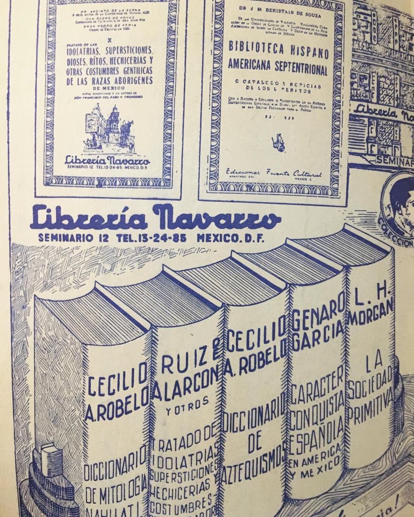 Just reading about it I can see there is a treasure trove of history tied to this project. It was published by Ediciones Pavlov, an imprint of Editorial Navarro, a major book enterprise of the mid-20th century. It began as “Ediciones Frente Cultural,” which, as someone mentioned to me on Twitter, was a prominent communist press in the 1930s. And, according to this short essay about it, it published everything from the works of Lenin and Stalin to major works of historiography, including Orozco Berra’s Historia antigua. Navarro had a substantive footprint for decades, and was a representative of a book culture that has believed in the promise of popular reading even if our educational system, and the success of television and the internet in capturing the imagination of Mexicans, often conflict with this dream.