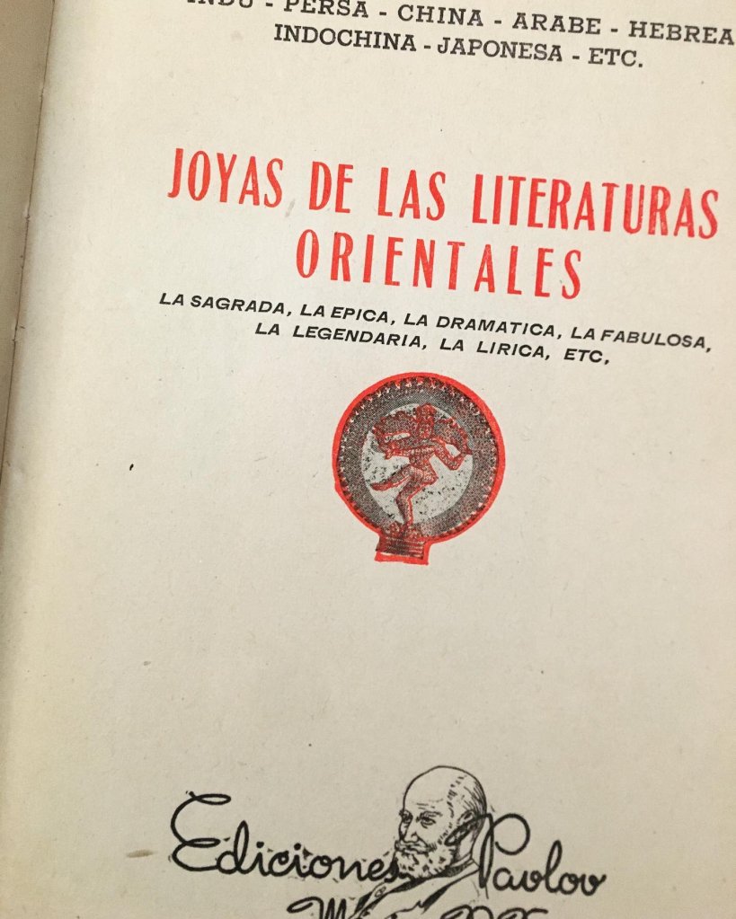 This article has now generated in me an interest in the history of these anthologies and collections, and I may venture into writing more about it. Speaking of omens, the great used bookstore La Murciélaga posted in their Twitter feed the book photos above, just as I was packing to leave for Mexico City. I jumped on it without a good sense of what it was. It turns out it is an anthology of texts in a variety of genres from the whole of Asia, from the Middle East to the Pacific. The book is uncut, and it will take me some emotional effort to crack open the pages, and it lacks a publication date. But in doing some research I have learned that the book dates to the 1940s, likely 1944 or 1945.