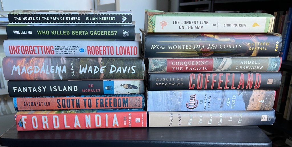 I used a series of criteria flexibly. Due to the variety of prior knowledge in the students, I decided trade books were better (academic books may be too complex). They had to be fairly recent (only Grandin’s is older than five years). I should have read it in full before and enjoyed it (I am now buying this kind of book on the regular to have options for the future). They should somehow connect with topics studied in class (sometimes specific regions, other times conceptual questions). It is absolutely possible to swap these for academic books or for works of literature (in 2020 I used a novel by Edwidge Danticat, which the group enjoyed, but I found out they had a much different experience with fiction). It is conceivable to do this exercise with films too, but I think a different setup may be required to do so.